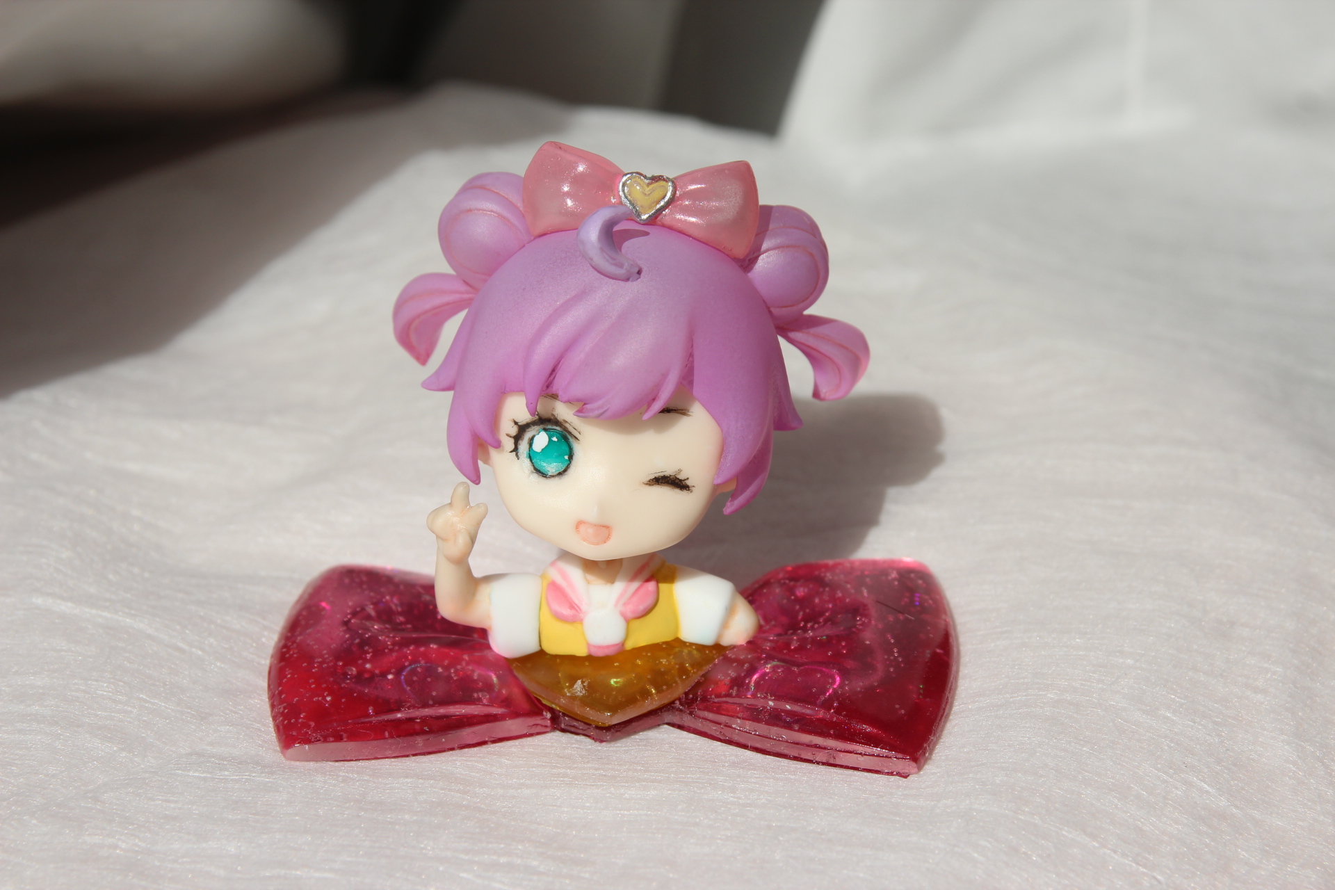 かしこまっ!バージョンのらぁらちゃんは台座と髪、リボン(販売物の髪、リボンパーツはホワイトレジンのみとなります)がクリアレジン仕上げとなっております。
